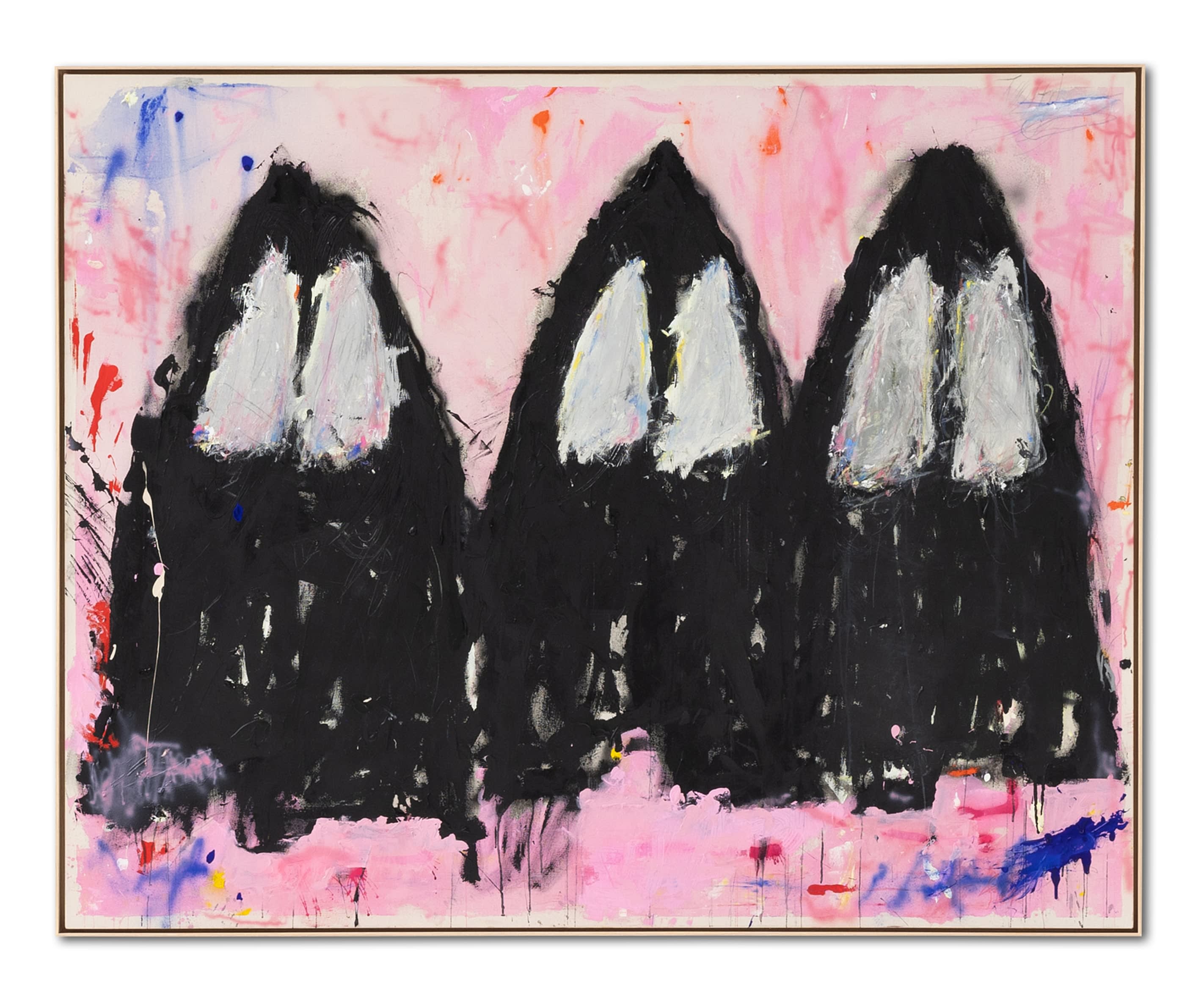 Marria Pratts3 Ghosts on Sunrise (from my car), 2023Acrylic, oil stick, pencil and spray paint on canvasH 160 x W 200 x D 6 cm -